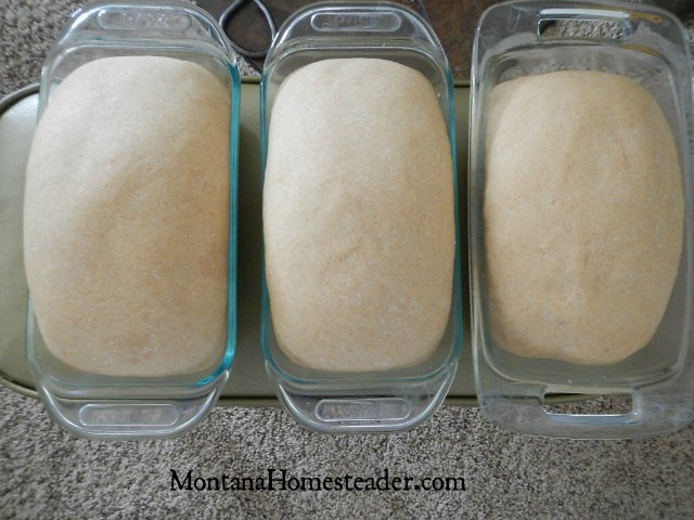 - Grease two or three bread loaf pans depending on how big you want your loaves (I find that three loaves is just right for the size bread slices we like). We use this coconut oil to grease our bread loaf pans and the bread always pops right out every time when it is done baking and cooled off!