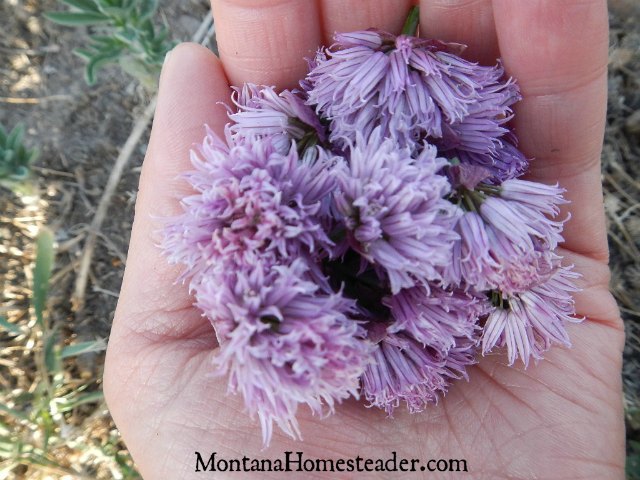 1. Harvest chive flowers just after they open and before they start to die off and turn brown. There can be a small bit of green stem left on the flower and that is fine. It will add more flavor to the infusion!