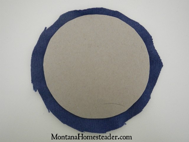 1. To create a pattern, draw or trace a circle that is 4″ in diameter and cut it out. I like to make my patterns out of cardboard since they’re more durable and easier to trace around on the fabric.