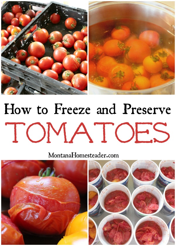We have a large chest freezer so freezing tomatoes is the easiest way for us to preserve them. A few years ago when we had over 200lbs of tomatoes we grew , I did can quart jars of tomato puree  since I ran out of room in our big freezer. Here’s a post over at Simply Canning where you can find out how to can tomatoes if you also want to give that method a try.