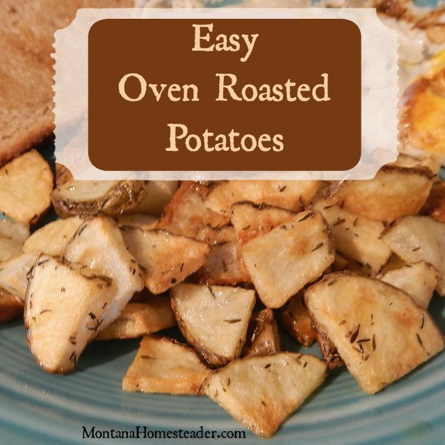 Since we moved to our homestead two years ago, we discovered that one of the vegetables that grows quite well in our soil is potatoes. Last year we grew over 50lbs of potatoes and this year we grew well over 100lbs of potatoes. Our homegrown potatoes are stored in cool storage so they will feed us throughout the year. I’m so glad I have this yummy recipe for oven roasted potatoes since we surely eat a lot of them around here! I also try to grow and dry a variety of herbs each year so it is an added bonus when I can use homegrown herbs in this recipe.